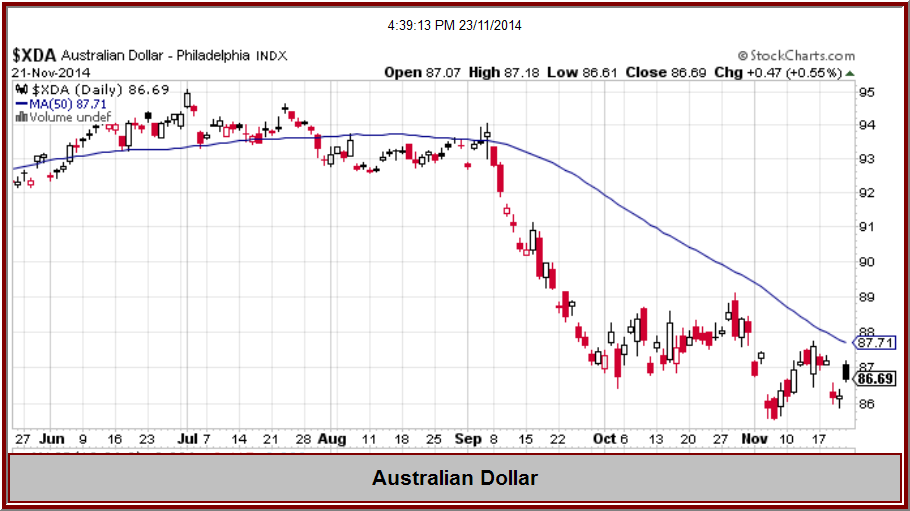 Notice that all of these prices are below the 50 moving average with the exception of the US Dollar.